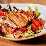 Mixed lettuce, ground fed fried chicken, bacon, cherry tomatoes, red onion, mixed nuts and a spicy touch